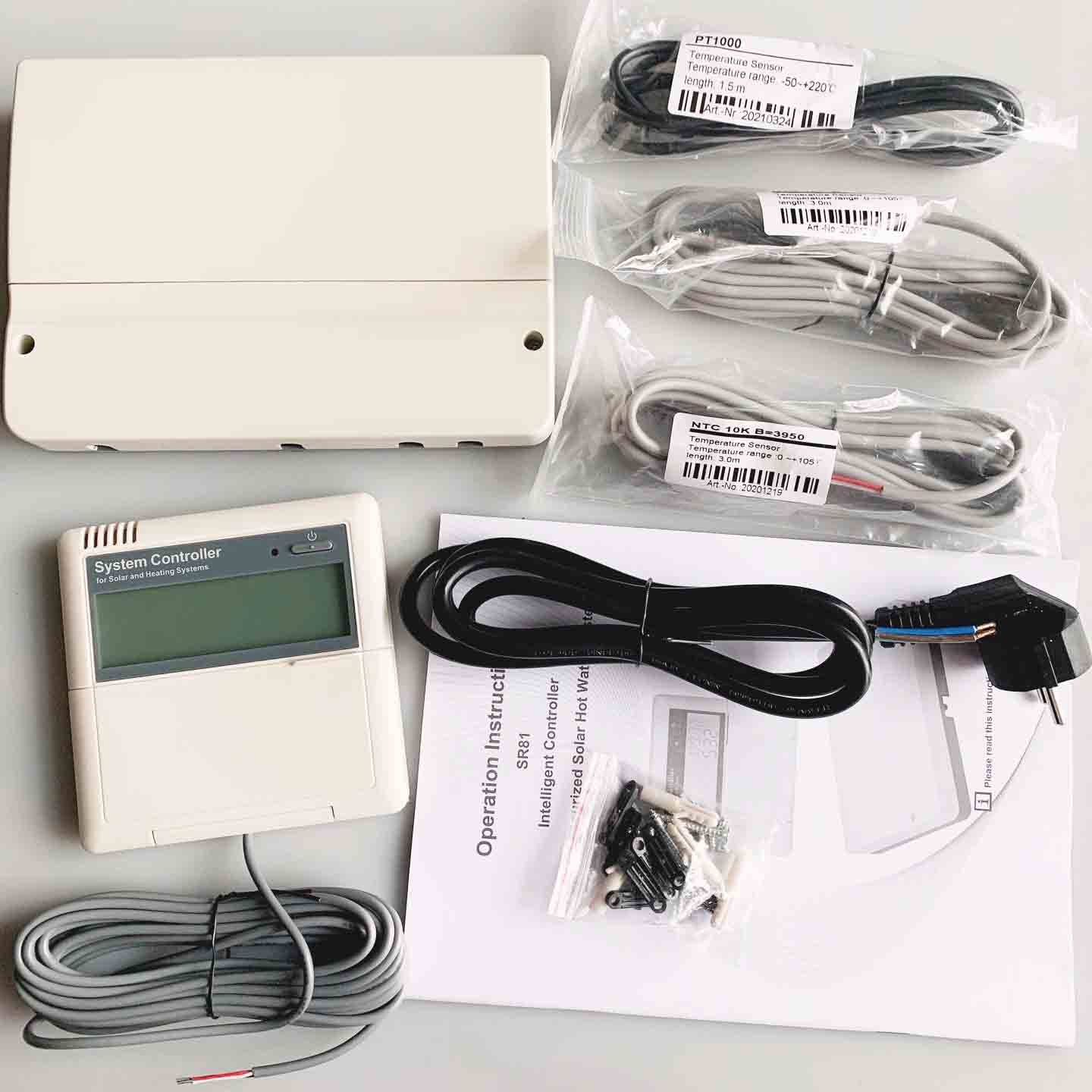 SR81 solar water heater controller is the updated version of SR868C8, featuring 0.1°C temperature accuracy, 10 push buttons with separate keypad, 5 optional variants, FRT flow meter integration, 1.5KW/3KW/4KW heating options and comprehensive safety functions for solar thermal systems.